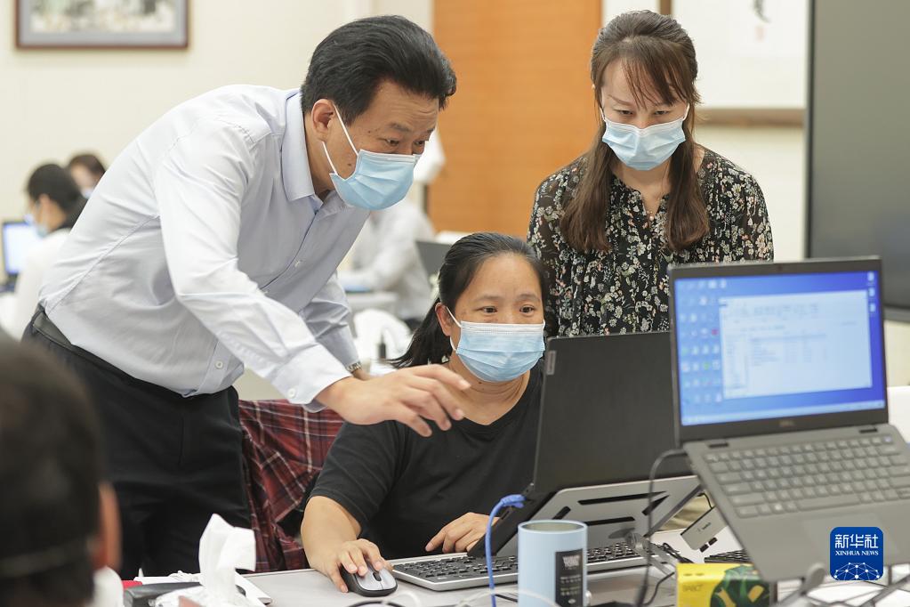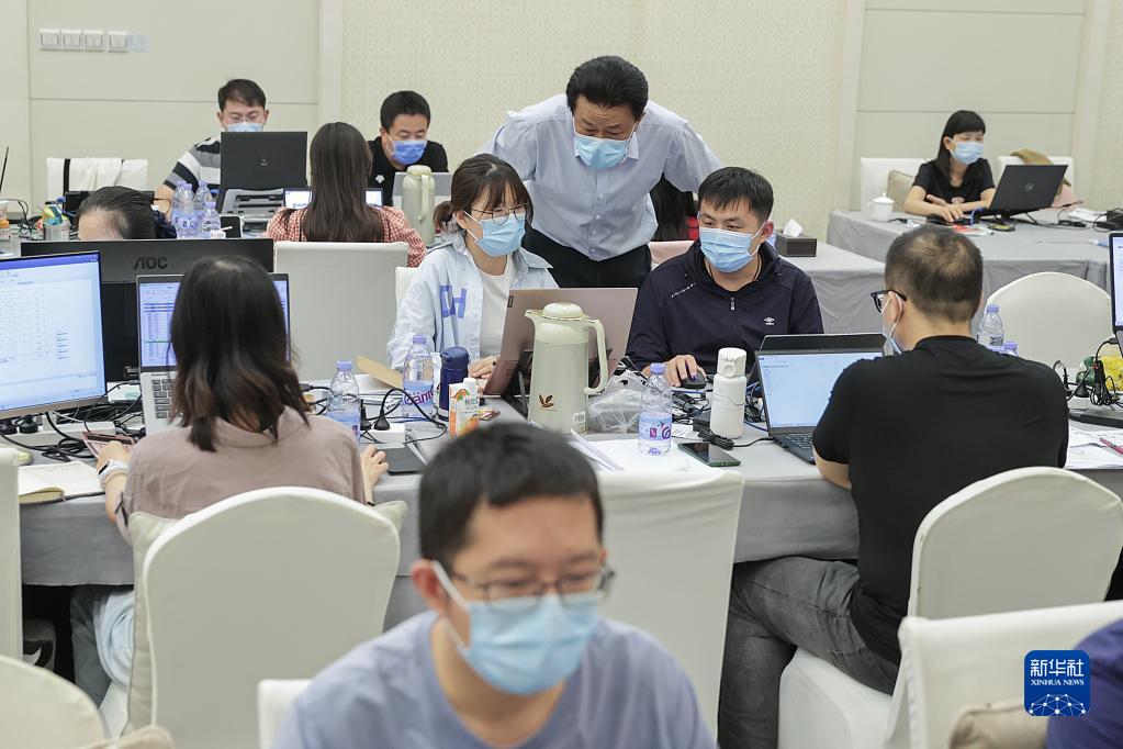李群(左)在北京指导流调溯源数据分析工作(2022年9月18日摄)。新华社记者 张玉薇 摄